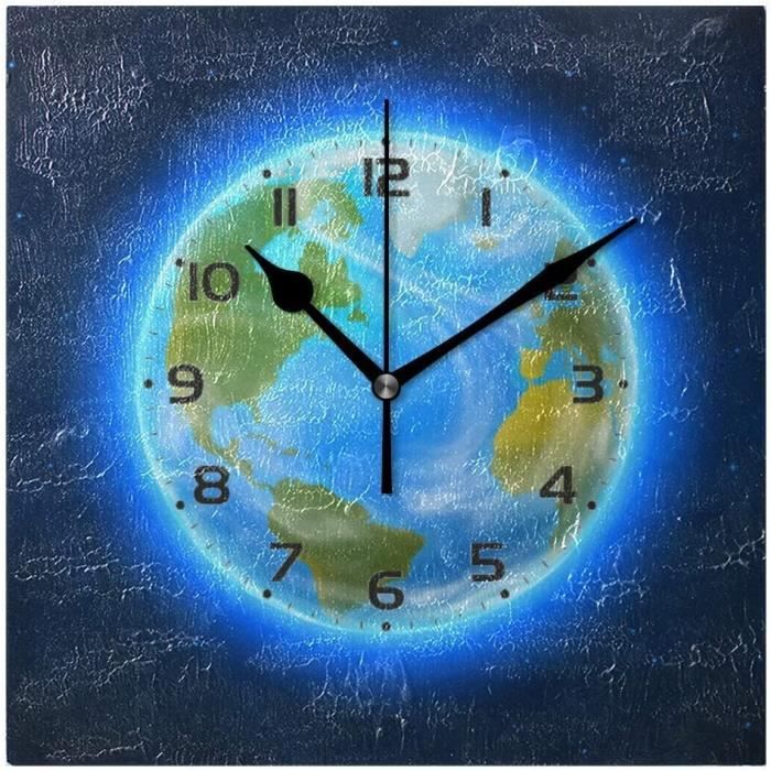 Horloge Murale Carre Diametre Bleu Brillant Terre Dans L Espace Lumineux Globe Planete Systeme Solaire Impression 20x20cm 14 Cdiscount Maison