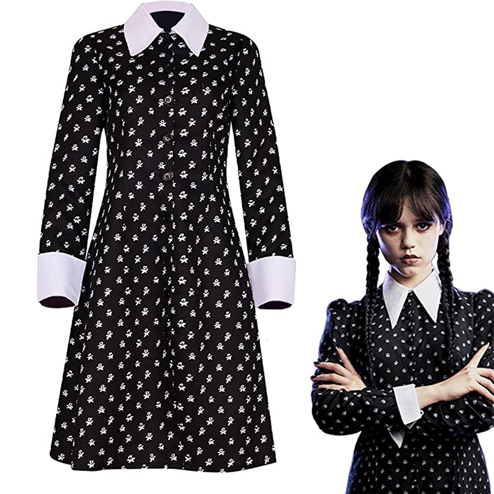 Wednesday Addams Dress For Children The Addams Family Cosplay Costume Wednesday Addams Gothic Costume Black Dress Walmart Com